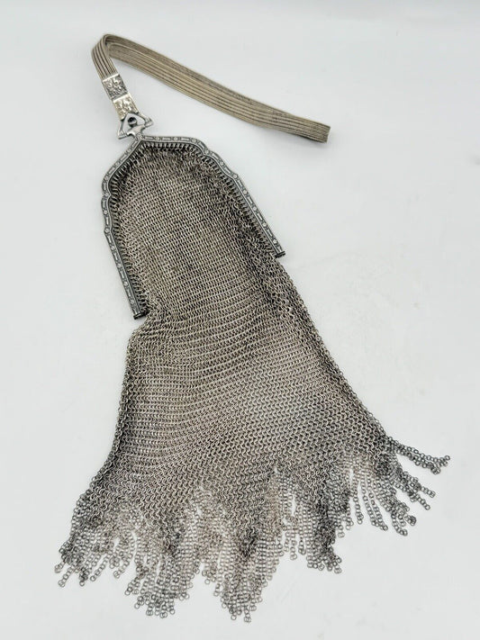 1920s Whiting & Davis Chain Mail Flapper Purse Fringed