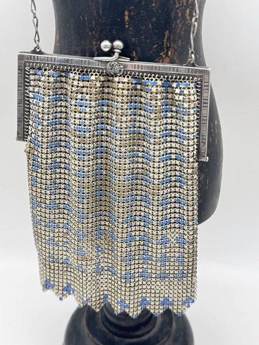1920s Whiting & Davis Chain Mail Purse Blue & Silver