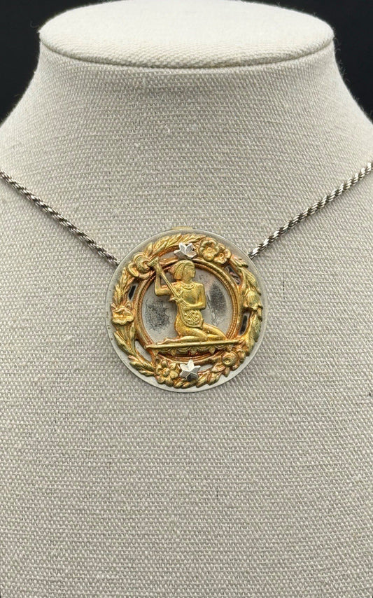 1 X ANTIQUE EGYPTIAN REVIVAL Button Circa 1.5”d Silvertone & Goldtone Metal
