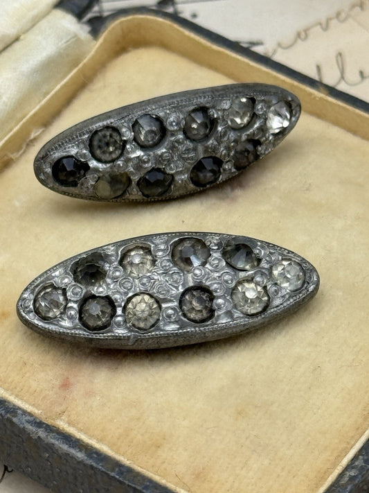 1920s Pair Shoe Buckles Rhinestone Pot Metal Oval Shape