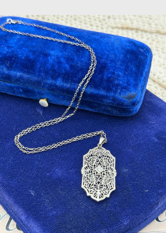 14K White Gold Art Deco Style Diamond Pendant Necklace – Appraisal Conveys with Purchase