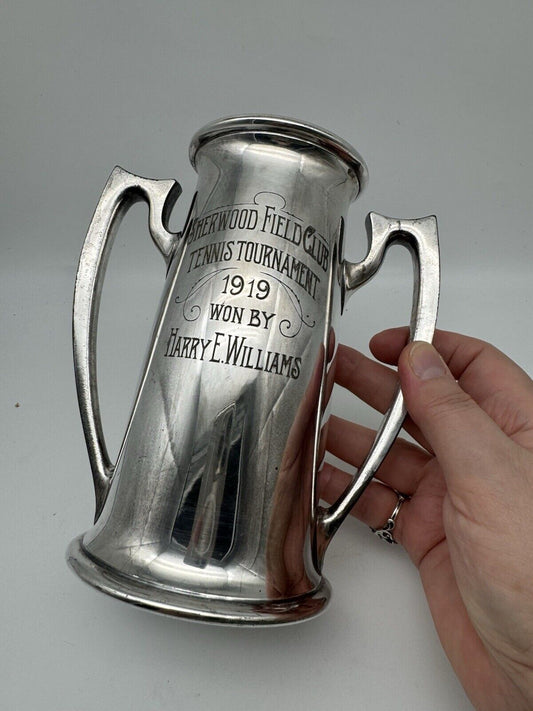 1919 ART NOUVEAUX Loving Cup Sherwood Field Club Tennis Tournament Trophy Silver Plate