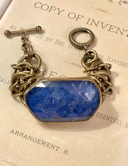 MASSIVE Stephen Dweck STERLING Bronze Washed 150g Toggle Bracelet Blue Gem Stone