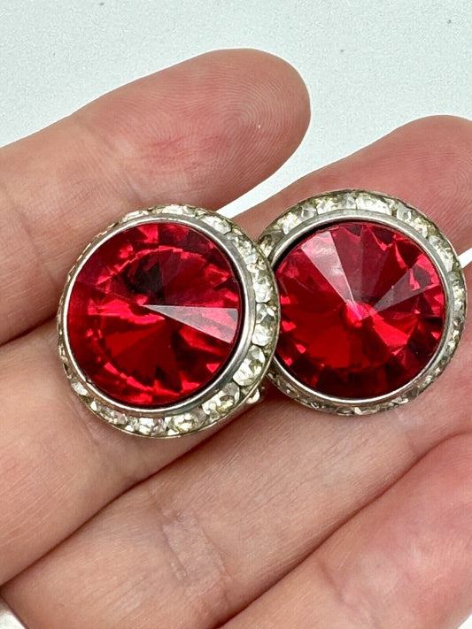 2 Pair Of Vintage RED Costume Clip-on Earrings