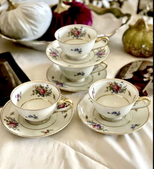 4 Espresso Cups & Saucers Demitasse Tirschenreuth The Queens Rose