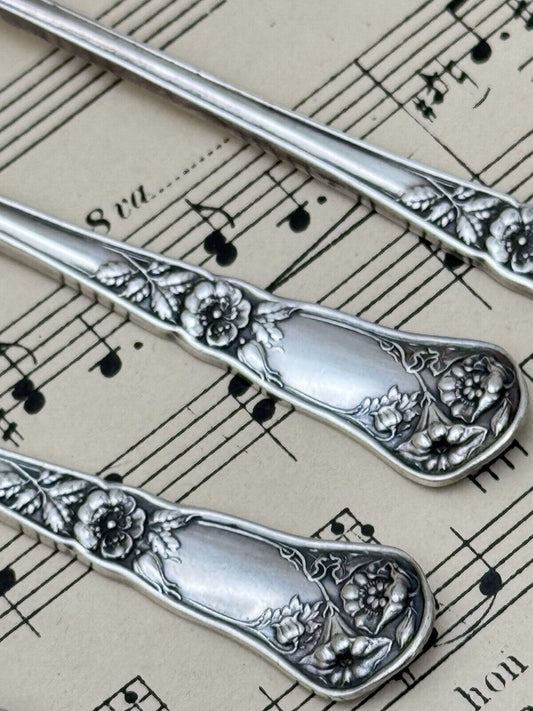 4 Reliance Wildwood Cocktail Forks 1908 Oneida Silverplate A1 ART NOUVEAU STYLE