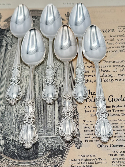 6 Antique Style Silverplate Tea Spoons HERITAGE 1953 Pattern 1847 Rogers Bros