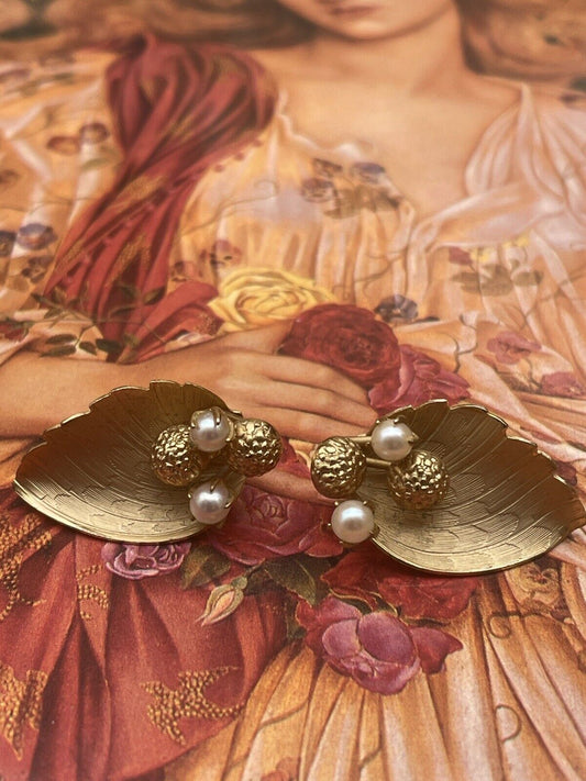 Vintage Gold Filled Angel Wing Earrings with Pearls SIGNED IPS