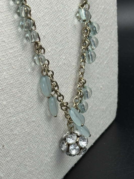 Vintage Goldtone Mint Green Lucite Dangler Necklace 32”