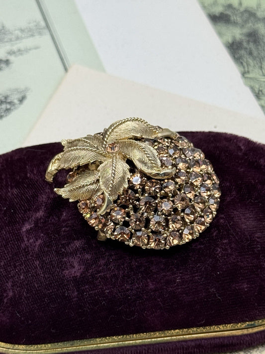 Vintage Goldtone & Rhinestone Leaf Brooch – 1.75” Round ESTATE FIND