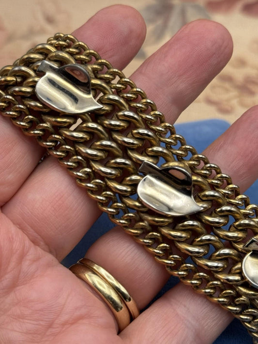 Vintage Gold Tone Chain Link Bracelet 7.5” x 1.25” Wide Statement Jewelry