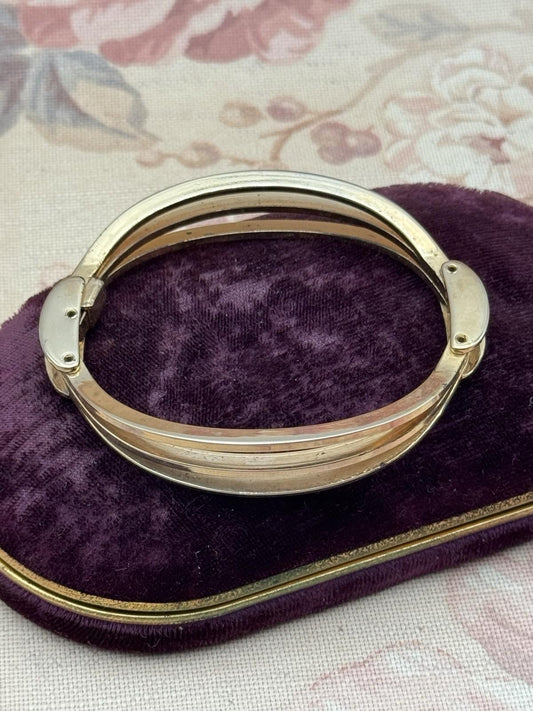 Vintage Goldtone Bracelet Hinged 6.5” Triple Band Mid Century Modern