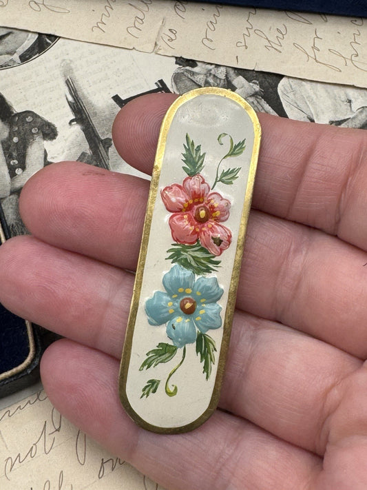 Vintage Hand Painted Barette Hair Clip Gold-plated Crown Inc