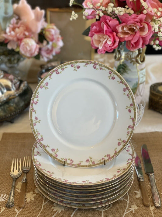 8 Dinner Plates Pink Roses Z Scherzer Porcelain China Bavaria Germany VINTAGE