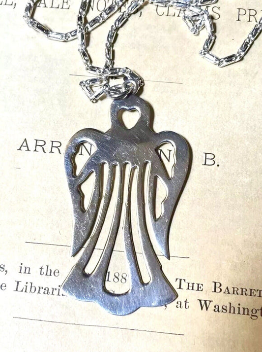 ANGEL Heart Pendant Sterling Silver 925 Openwork 2” & Unmarked Chain 12”
