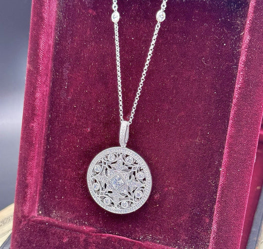 925 Silver Fleur De LIS Pendant Necklace Cubic Circonia Ca 19”long