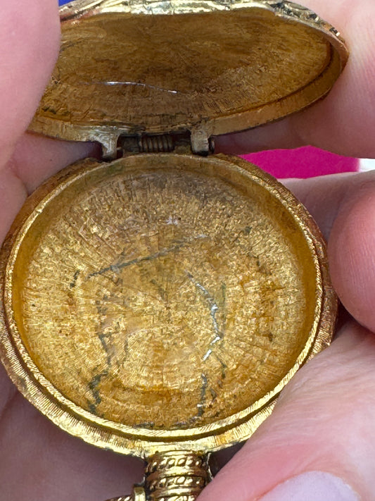 Vintage Max Factor Lip Balm Locket Necklace EMPTY Gold Tone Courting Couple with Slider Chain 27”