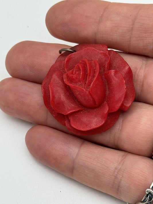 Vintage Red Early Plastic Celluloid Rose Pendant