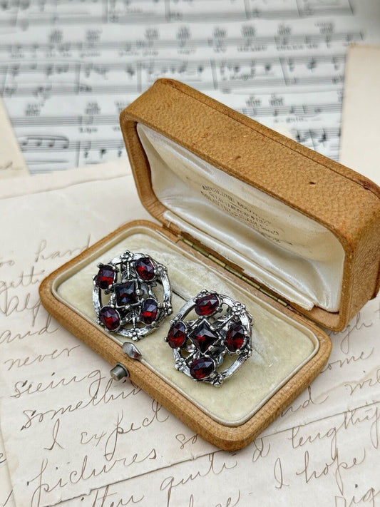 Vintage Red Rhinestone Silvertone Clipon Earrings
