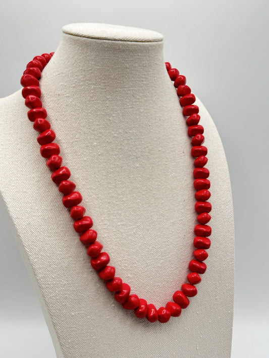 Vintage Red Bead Nugget 0.5” Wide Beaded Necklace 24”