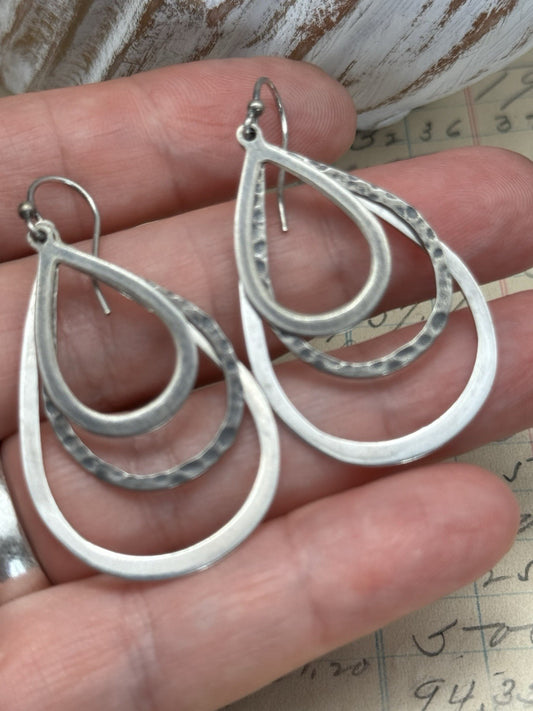 VINTAGE Silpada Sterling Silver Tri textured 3 Hoop Earrings ESTATE FIND