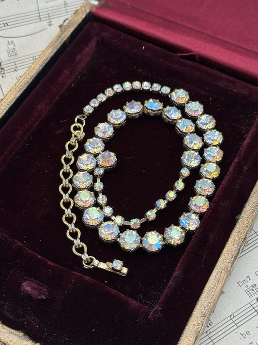 Vintage SIGNED WEISS Rhinestone AB Choker Necklace 17.5”l Hook Closure
