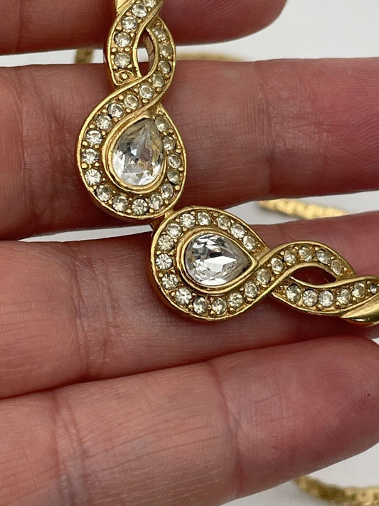 Vintage Trifari Necklace Goldtone Clear Crystals Signed 80s Couture