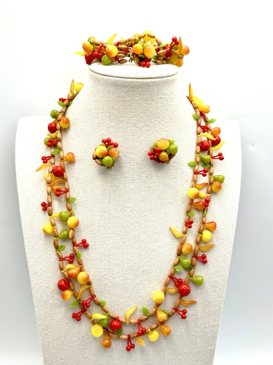 Vintage West Germany Plastic Fruit Jewelry Set Necklace Bracelet Earrings