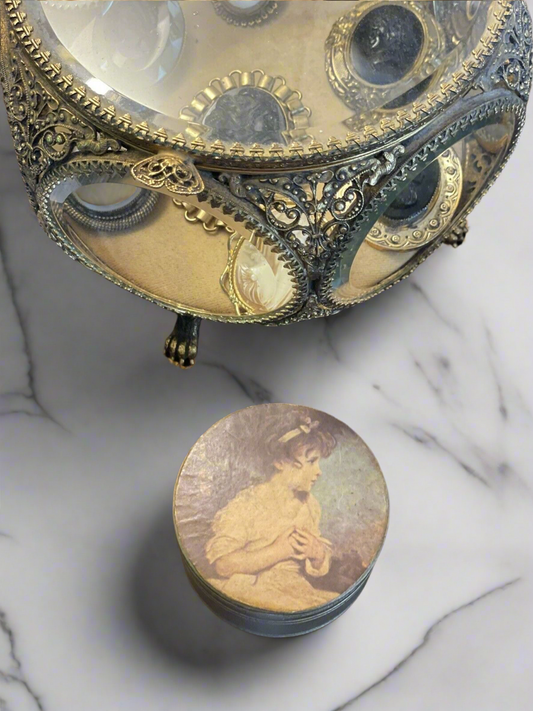 Vintage Trinket Box Wood Gilded Decoupage Depicting Young Girl CHARMING
