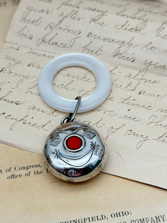 VINTAGE TOWLE Sterling Silver Rattle Teething Ring FAUX MOP Red Nose Clown Face
