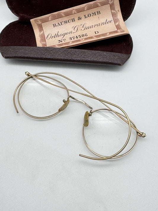 Antique 1943 Baush & Lomb Gold Filled Bifocals W/Original Case Certificate