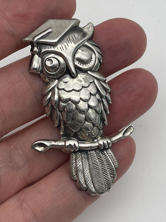 Vintage Wise Graduate Graduation Owl On Branch Brooch Beau Sterling Silver 925