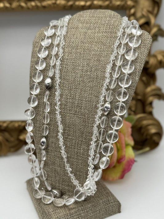 VTG 3 Strand Clear Glass Pool Of Light STYLE Silvertone Accent Beads 18” + 2”