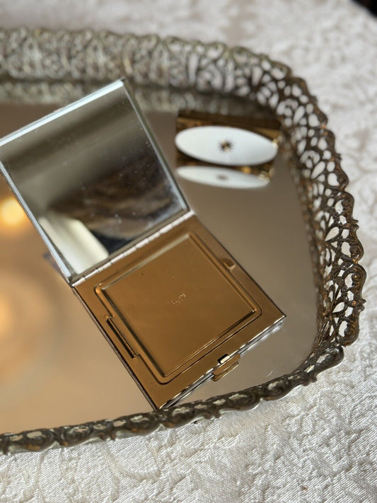 Volupté Compact Silver & Goldtone Belt Buckle Design Mirror Powder Empty VINTAGE