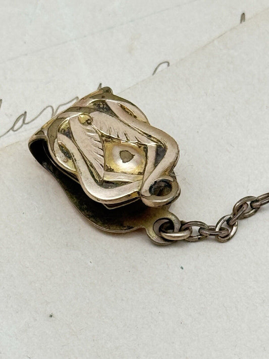 Antique Gold-Filled Locket Monogram w/Bow 925 Pin ESTATE FIND