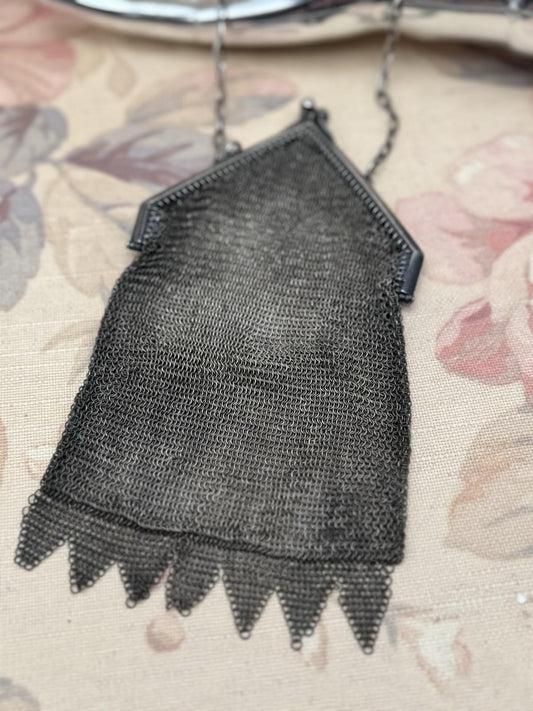 Antique Chatelaine Purse Silvertone Mesh Bag 6.5” x 4” AS IS Small Imperfections