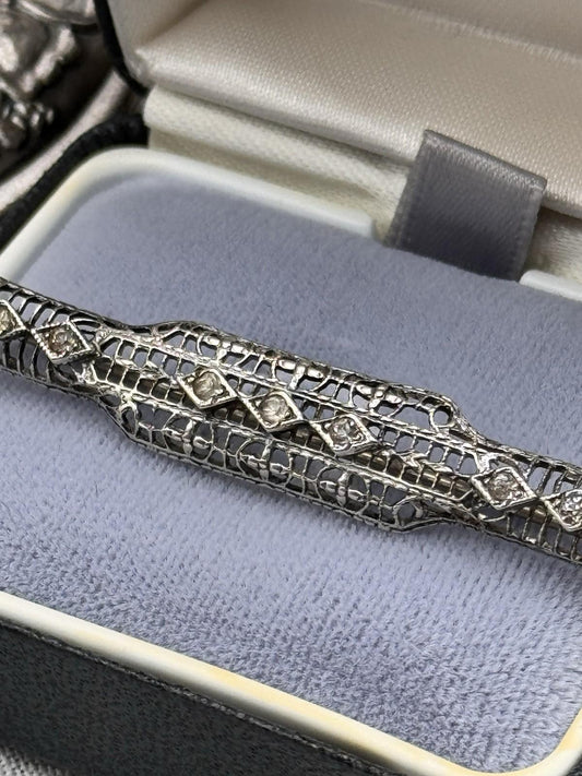 Art Deco Bar Pin Silvertone Openwork Rhinestone 2.25in Vintage