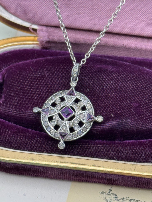 Antique Style 800 Silver & Purple Glass Pendant Necklace – 925 Chain