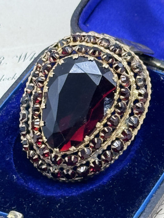 Art Deco Czech Glass Dress Clip Red Faceted Stone Signed Czechoslovakia