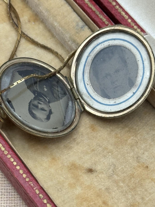 Antique Gold Filled Locket w/ Tintype Photos & Vintage 18” Chain c.1800s