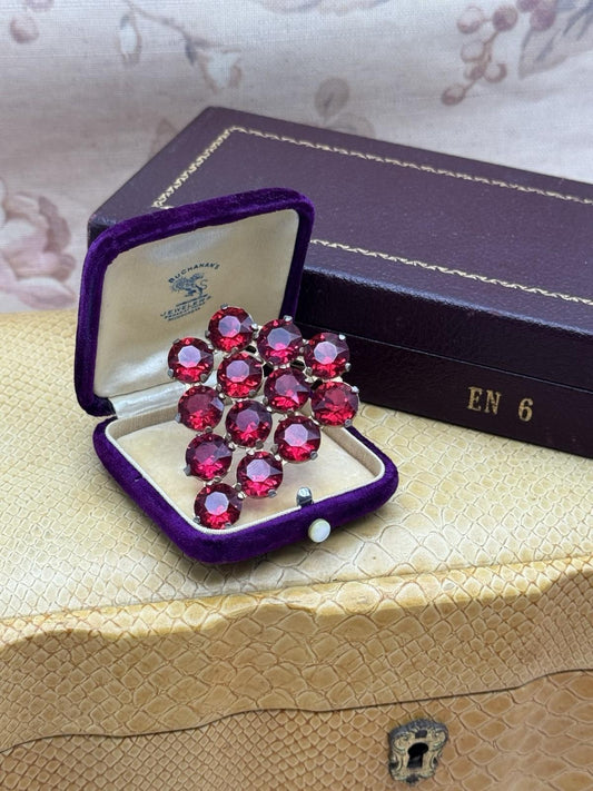 Vintage Art Deco Style Red Glass Rhinestone Dress Clip 2.25” Czech Style