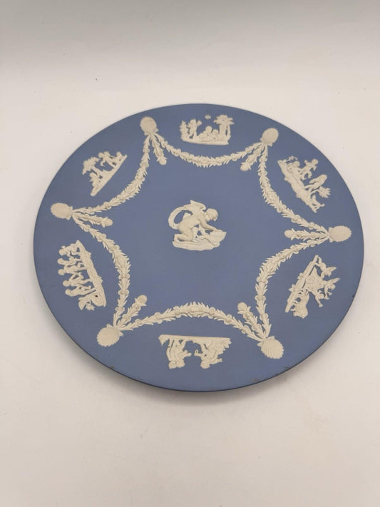 Wedgwood Jasperware Plate Blue White Cupid Cherub Relief 9 Inch