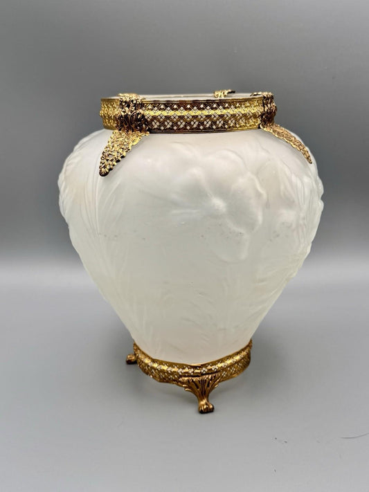 Vase Art Nouveau Satin Glass Poppy Flowers Gold Filigree Ormolu 9.25”