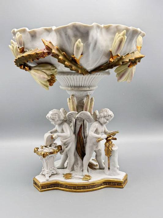 Large Cherub Compote French Inspired Porcelain 12” VINTAGE ESTATE FIND