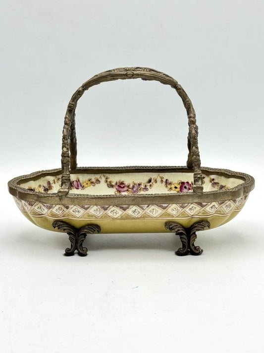 Porcelain Basket Ormolu Chinese Export Floral Gilt Metal Mounts – 7.25”