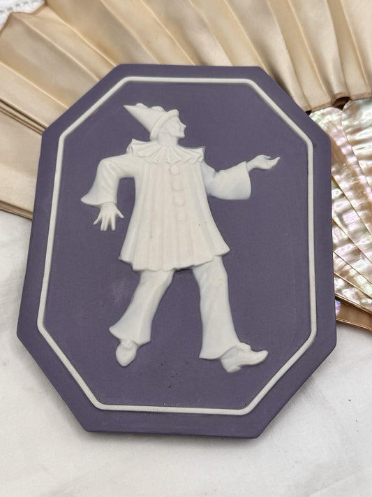 Jasperware Style Plaque Purple Octagonal Pierrot Clown Relief Wall Decor 6”