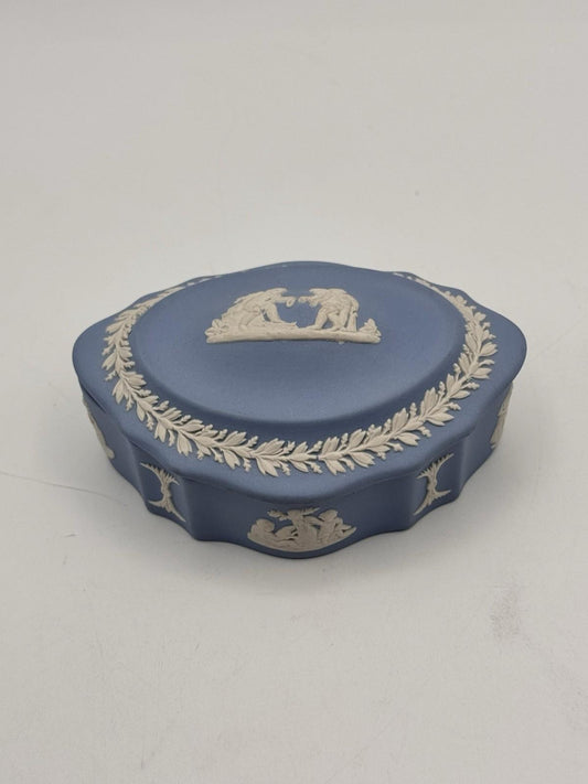 Wedgwood Jasperware Trinket Box Blue White Relief 4.5”