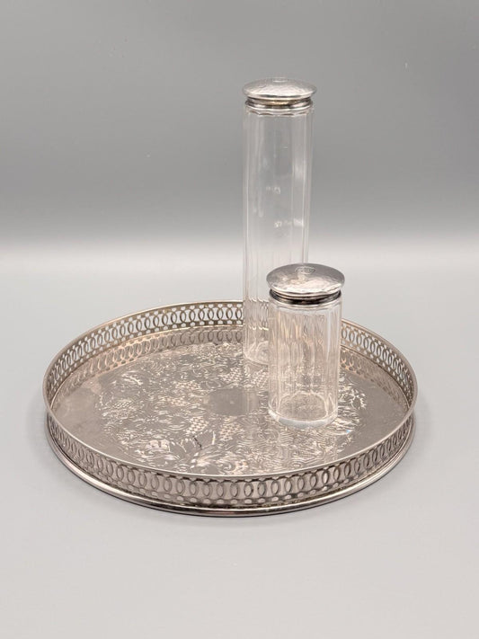 Silverplated Gallery Tray 8” Pierced Rim Engraved Vanity Barware ARTHUR PRICE