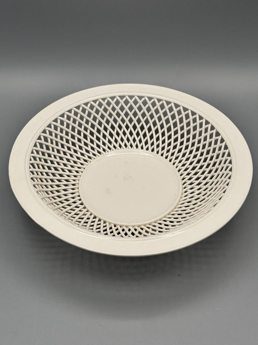 Vintage Reticulated Footed Fruit Bowl 7.75in Cream Lattice Compote