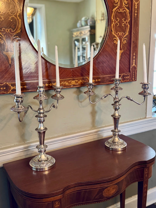 Pair of Vintage Silver Plate Convertible 3/5 Light Topper Candelabra – 6 Display Combinations